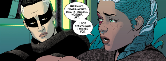 (2) I do enjoy the "red dot" symbolism in the final full-page splash.