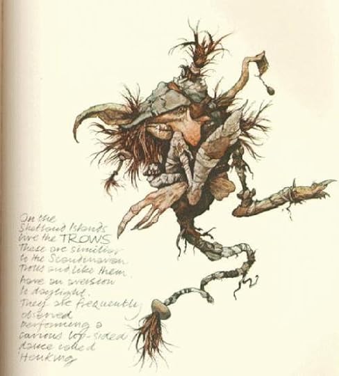 It was thought to be an unlucky thing to say good things at the cradle of a new child. To do so would enrage the trows, the ugly misshapen earth-spirits who moved through the valley about their secret ceremonies in winter and darkness.