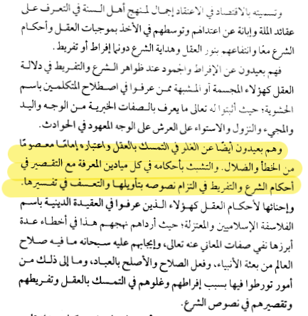 فمثال العقل البصر السليم عن الآفات و الأدواء ، ومثال القرآن الشمس المنتشرة الضياء ، فأخلق بأن يكون طالب الإهتداء المستغني بأحدهما عن الآخر في غمار الأغبياء .