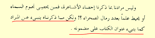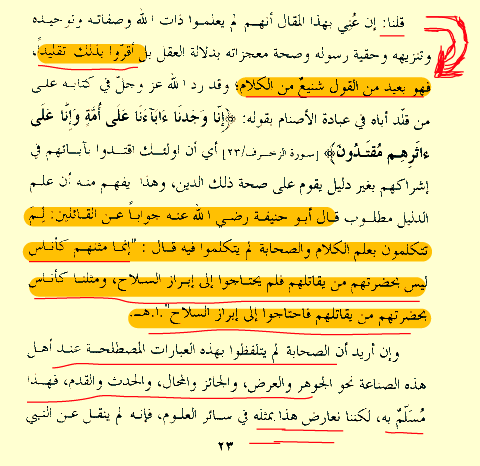 وقال السبكي في طبقاته : واعلم أن أبا الحسن الأشعري لم يبدع رأياً ولم ينش مذهباً وإنما هو مقرر لمذاهب السلف ، مناضل عما كانت عليه صحابة رسول الله صلى الله عليه وسلم ، فالإنتساب إليه إنما هو باعتبار أنه عقد على طريق السلف نطاقاً وتمسك به ، وأقام الحجج والبراهين عليه وصار المقتدي به في ذلك السالك سبيله في الدلائل يسمى أشعرياً .