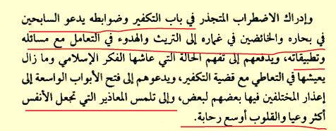 لابد أن أشير هنا إلى أن اهتمامي بالكتاب متعلق فقط في الموقف الشرعي بالحكم بالكفر أو الإسلام (أدرك حساسية كلمات مثل كفر وكافر ومرتد ومشرك وما إلى ذلك لكن هذه كلمات لابد منها في (التفريق فمسألة الكفر و الإسلام ليست بسيطة ولا يجب أن يصبح الموقف الشرعي ضبابياً في هذه المسألة ، دون الخوض في مسألة حد الردة وأن هذا الحد يقام على المرتد بالإطلاق أم على المرتد المحارب فقط