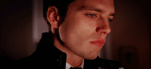 He opens his eyes, water glistening in them.