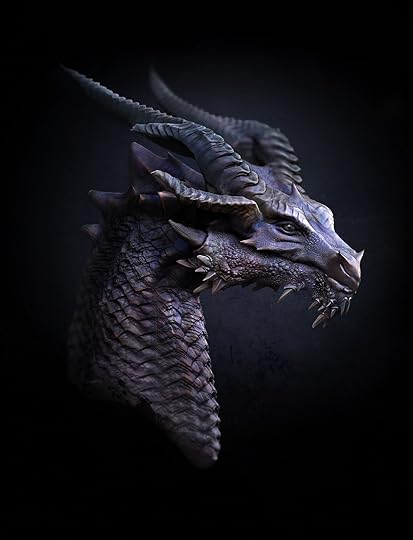 Two short horn-looking things spear back from his temples that look to be a good six inches long. He’s terrifying and strangely majestic, and he looks like he could break me in half without even trying.