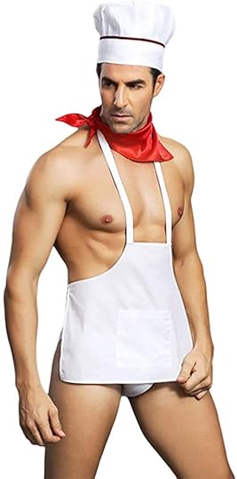 I Googled male chef costumes and haven’t really recovered from the search results, so I’m literally just wearing a black apron over my everyday clothes and carrying around a wooden spoon.
