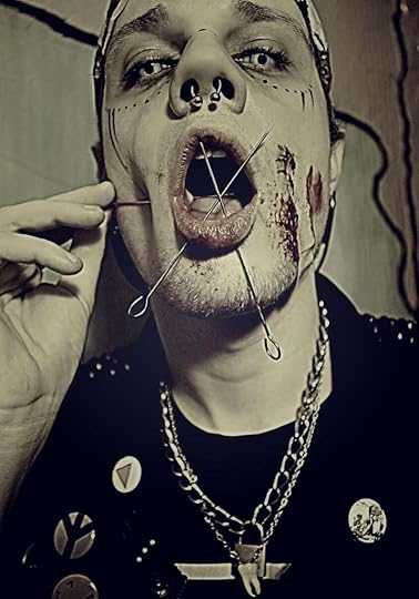 As the crowd goes quiet again, I slide a long skewer through one cheek and out the other side. I hear a gag from somewhere near the front, and I want to smile but I can’t, not like this. I laugh on the inside.