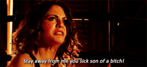 His eyes take on a darker shade of golden brown as he leans forward. “Which one of the cunts that I’ve fucked did you fall out of?”