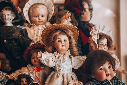 The entire wall to the left is one giant glass curio cabinet filled with what I’m guessing are porcelain dolls. Hundreds of them. In the light through the window ahead, I can see their beady eyes staring forward through the glass, where each appears to be propped on some kind of stand.