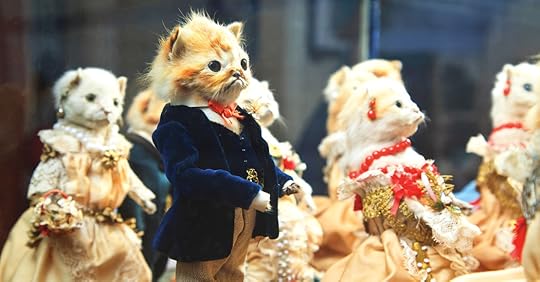 It quickly became apparent that Wyatt’s taxidermy hobby wasn’t limited to just preserving animals. Apparently, it involved some theatrics, too. These animals were…dressed in clothing and posed.