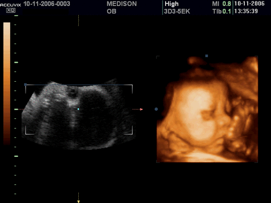 I looked to her with my jaw dropped and didn’t have to say anything. She just nodded and squeezed tighter. Not wanting to miss a moment, I turned back to the screen to take in the little nose and tiny mouth.