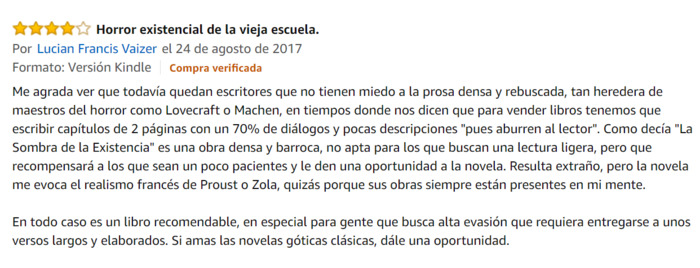 Empiezo el día con una increíble reseña de una de mis novelas, "La sombra de la existencia" :-)