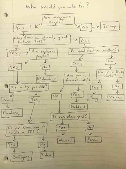 At that point, I expect some candidates to have dropped out. Sanders will get Yang's supporters, and Steyers', and from all the stragglers still in the running (why, oh why?), and probably chunks more from Warren. I still think it'll come down to Sanders v.s. Buttigieg...