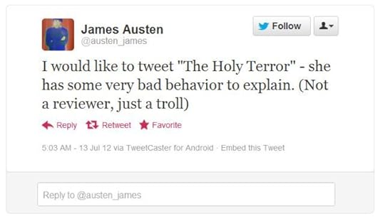 How exciting! Headcase author James Austen sent me a nasty PM calling me a twat and is now harassing me on Twitter. Color me amused.