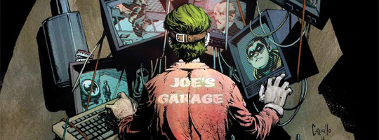 Snyder's my favorite Batman writer, so I have high expectations going in. Possibly a SPOILER, though it's on the cover and is the first line of the blurb: this arc is known for Joker wearing his flayed-off face as a mask. This one-ups Grant Morrison, who started his run by shooting Joker in the forehead, giving him a bullet scar and brain damage.