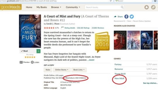 V. A Court of Wings and Ruin is NEW ADULT/EROTICA but Goodreads editors won't tell you to include it in the choice awards’s Reviews > A Court of Wings and Ruin > Status Update