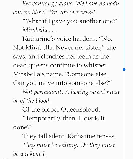 Then it opens up questions like: once the dead queens leave for another host, what if Katharine simply refuses to let them back in to her own body? Would they be able to force themselves in, if one of the rules to "switch" hosts was that the person needed to be either willing or extremely weak?