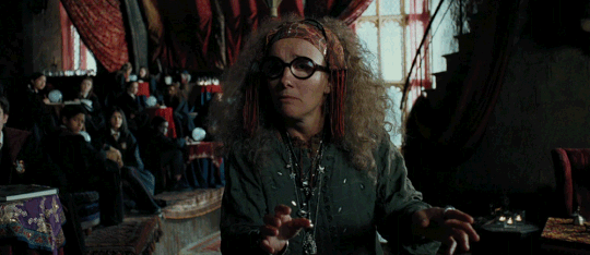"Ooooo, Professor Trelawney, I've just remembered! You saw her leaving, didn't you? Didn't you, Professor? 'Around Easter, one of our number will leave us forever!' You said it ages ago, Professor!"