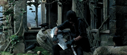 (2) At the execution scene, both Harry and Hermione fall to pieces. Surprisingly, it's Ron that's the pillar of strength.
