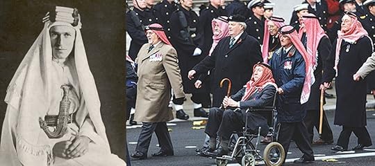 وكان من بينهم محاربون ارتدوا الكوفية العربيةإحياء لذكرى قتلىالفرقةالبريطانية بقيادة الضابط الشهير توماس اتدوار لورانس الملقب بـ"لورانس العرب"، أوالبدوي الإنجليزي الذي اندمج في قبائل شبه الجزيرة العربية، وأدى دوراً بارزاً في تمويلها وتأليبها على فلول الجيش التركي في سياق الحرب العالمية الأولى لمصلحة بريطانيا.