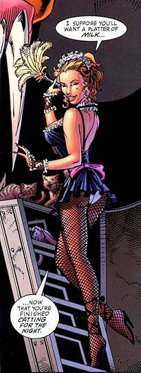 Her internal monologue of how the bat is an even darker creature of the night than the cat comes... kind of out of nowhere. A guy dressed like that makes her think this way but a 3 m crodile man only gets a "wow"?