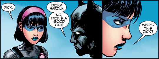 (2) Seriously, they used the exact same "Dick" Grayson joke again?