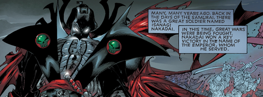 (1) So, there's this two-parter set in Japan, seemingly about a samurai Spawn. Though, it turns out he's only dressed like a Spawn... I don't know, it's confusing.