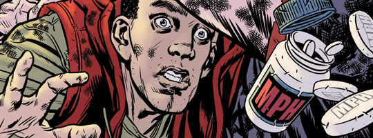 (1) From what I gather from the blurb at the back of the book, this is about kids who take a speed drug (the superpower not methamphetamine) and commit crimes.