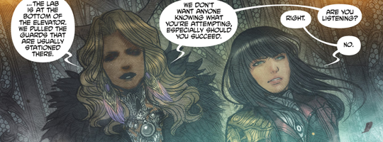 (2) If I have one criticism about the artwork, it's that there needs to be more visual difference between all the dark-haired women.